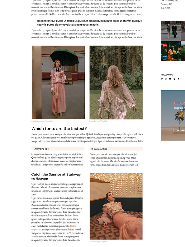 Multiuse predesigned inner pages
